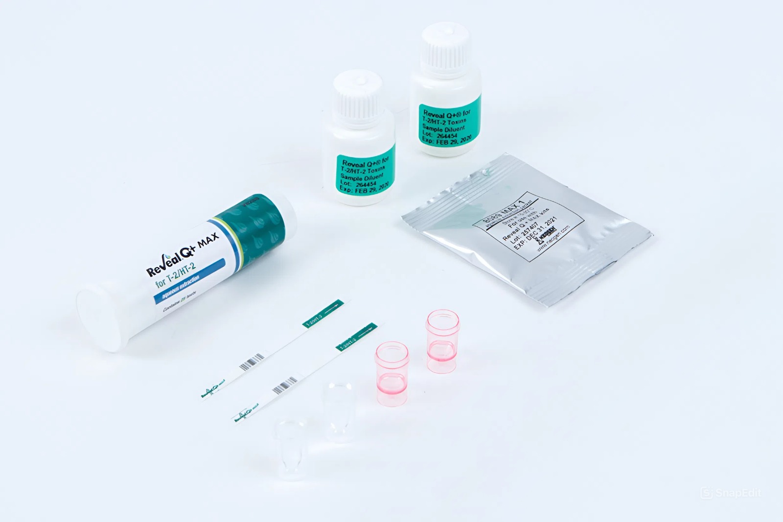 Reveal Q+ MAX for T-2/HT-2 (Neogen, США) — це кількісний латеральний тест для визначення двох найнебезпечніших мікотоксинів — T-2 та HT-2, що утворюються грибами Fusarium у зернових культурах. Тест базується на інноваційній технології водної екстракції MAX 1, яка забезпечує безпечну підготовку зразків без використання хімічних розчинників. Результат аналізу готовий уже через 5 хвилин, а діапазон вимірювання становить 50–500 ppb.